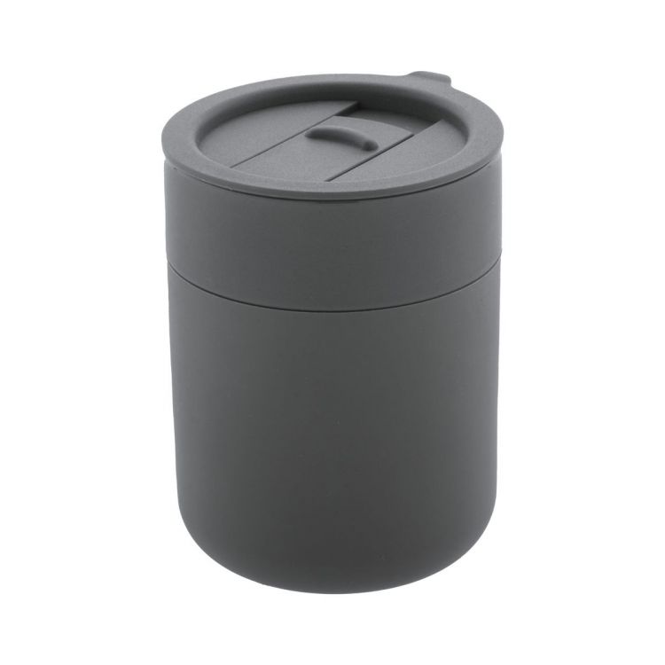 Vaso de viaje de cerámica recubierto de silicona con tapa de plástico PP para beber. 300 ml.