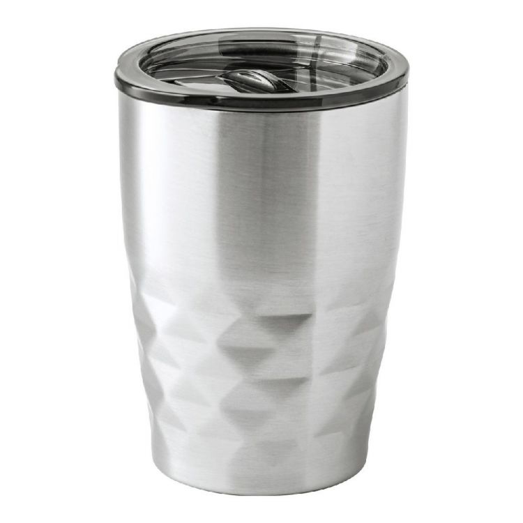 Vaso térmico aislado al vacío de doble pared de acero inoxidable y cobre con tapa de plástico para beber. 350 ml. El aislamiento de cobre mantiene las bebidas calientes durante 12 horas y frías durante 24 horas.