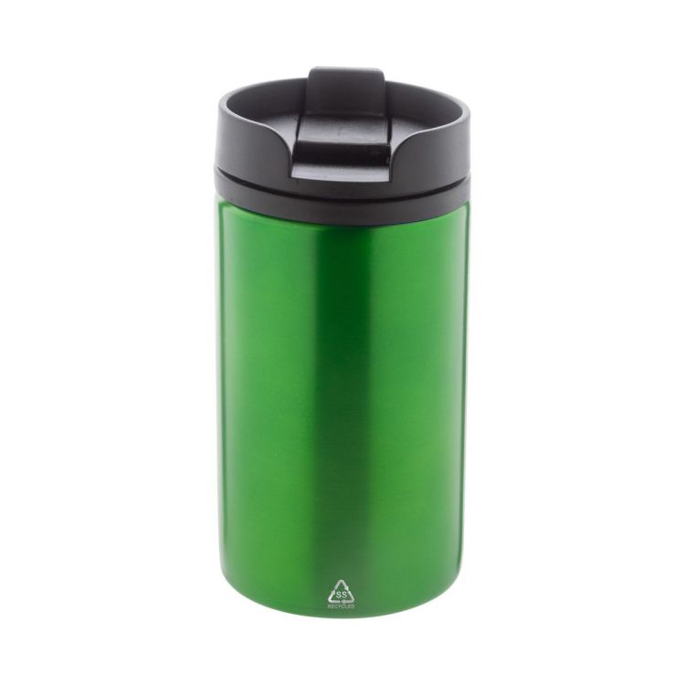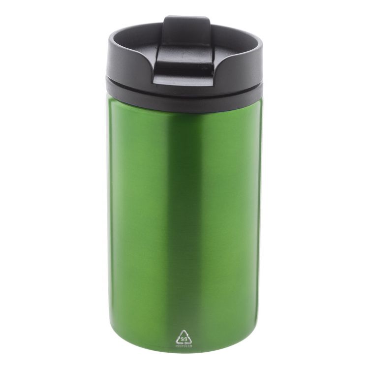 Vaso térmico aislante de doble pared de acero inoxidable reciclado con interior de plástico PP y tapa para beber. 250 ml.