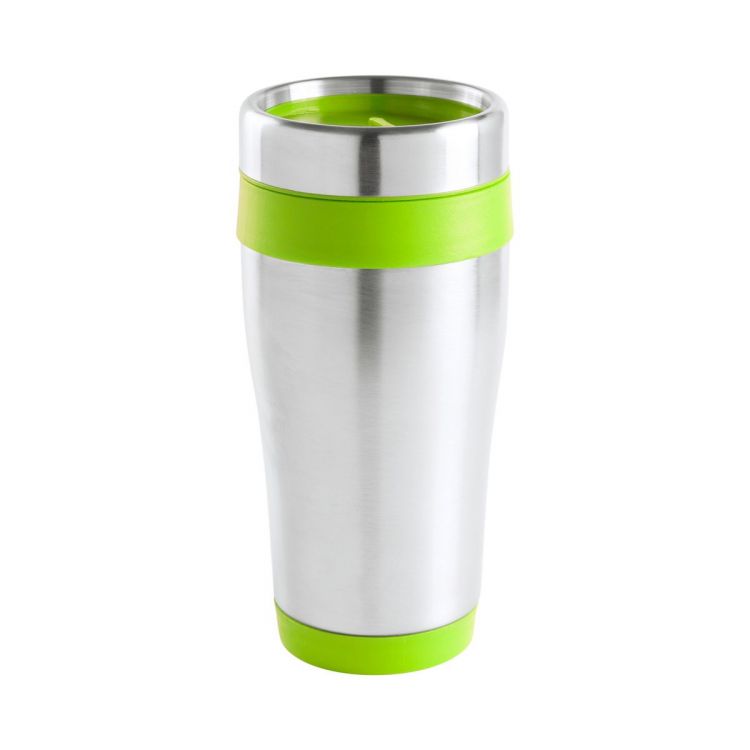 Vaso térmico de acero inoxidable de doble pared con piezas de plástico de colores, en caja de regalo. 450 ml.