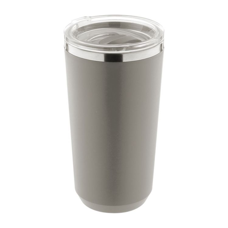 Vaso térmico de acero inoxidable de doble pared recubierto de plástico PP con tapa para beber. 500 ml.