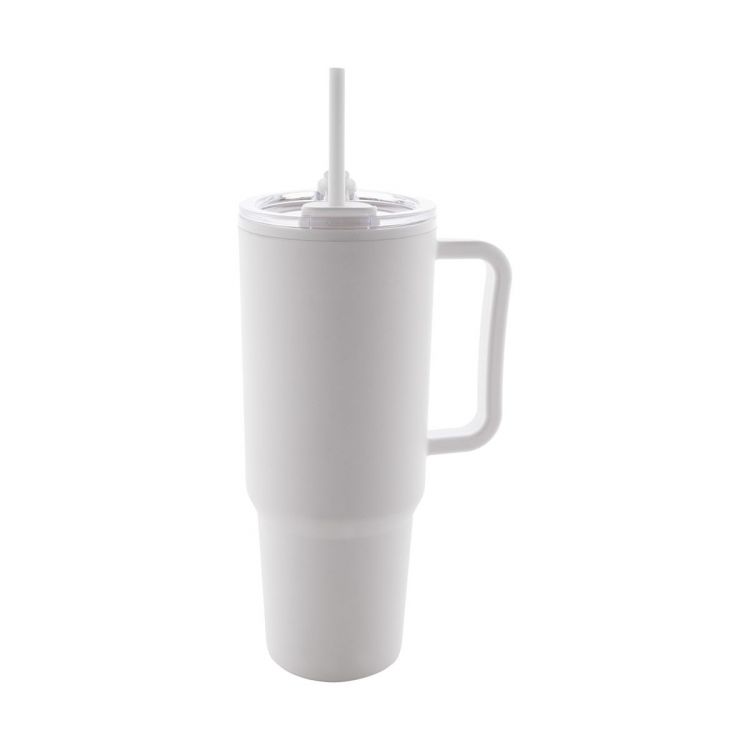 Vaso térmico aislante de doble pared de plástico PP con tapa para beber y pajita. 1100 ml.