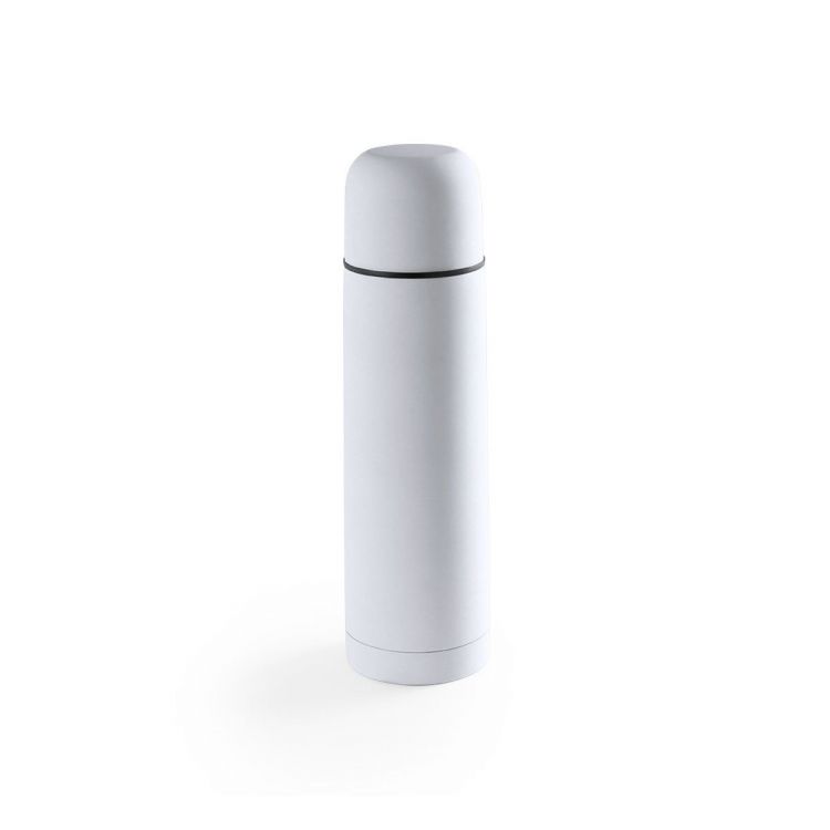 Termo de acero inox de 500ml de capacidad en diseño monocolor de vivos colores. Con dosificador de seguridad y tapa a rosca convertible en taza. Presentado en caja individual. Disponible manual de instrucciones en español e inglés.