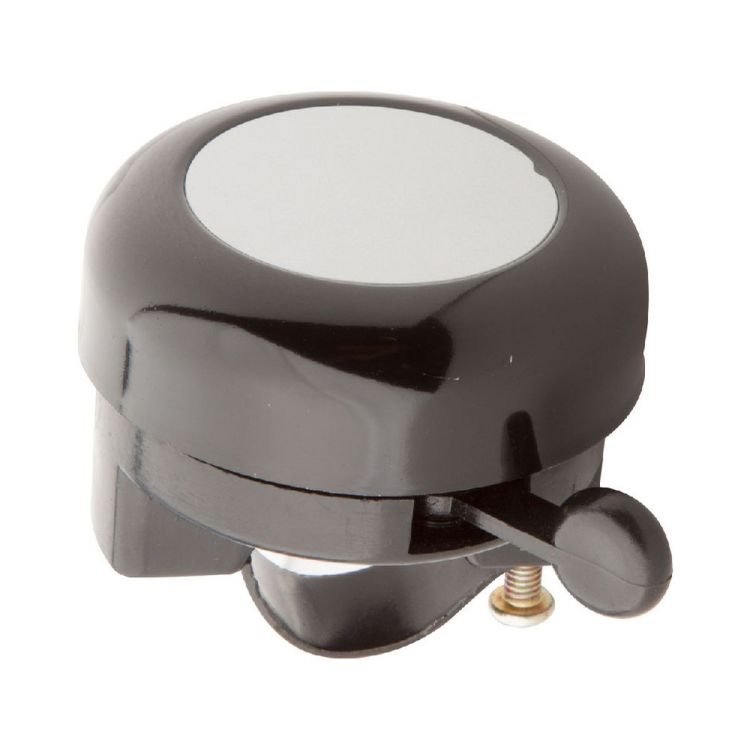 Timbre de bicicleta de aluminio con placa plateada.