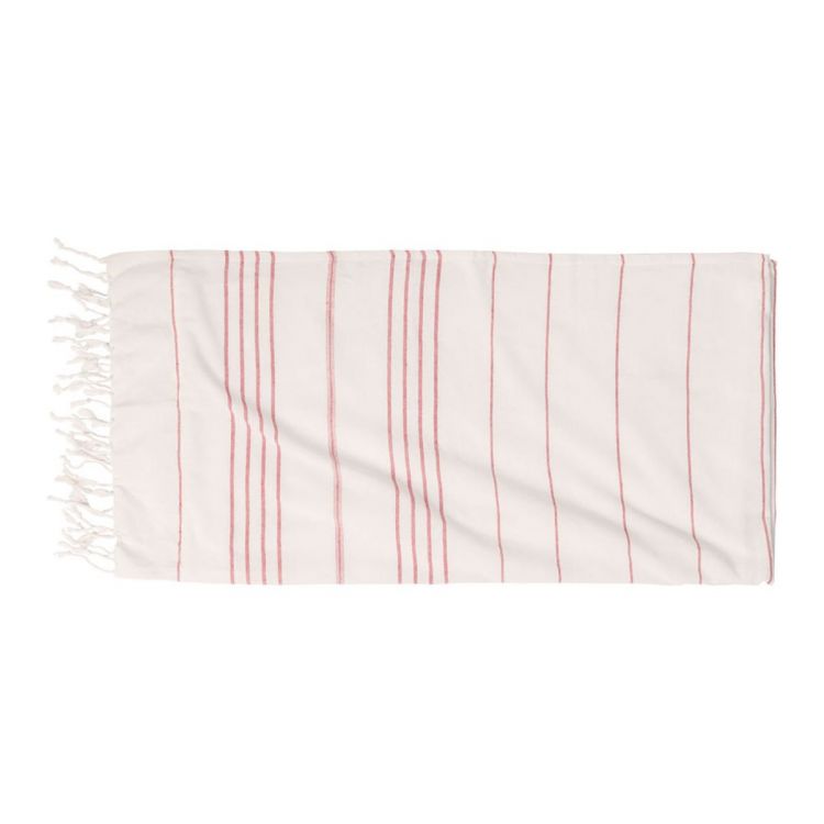 Toalla de playa pareo bicolor de polialgodón. Mezcla de 50% algodón orgánico y 50% poliéster, 280 g/m², de color rojo