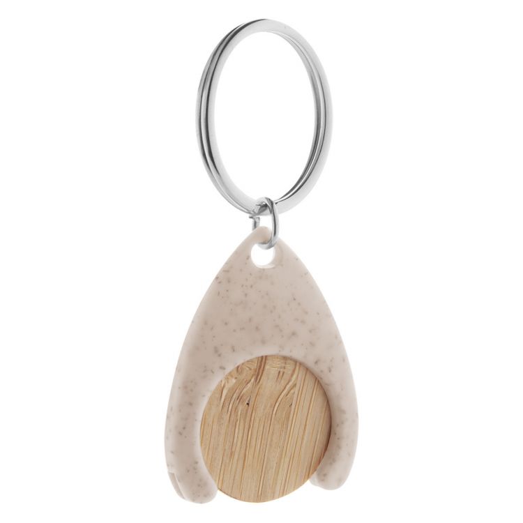 Moneda de carrito de la compra de bambú en llavero de plástico ecológico de paja de trigo. Tamaño de la moneda: ø25×2 mm, de color natural