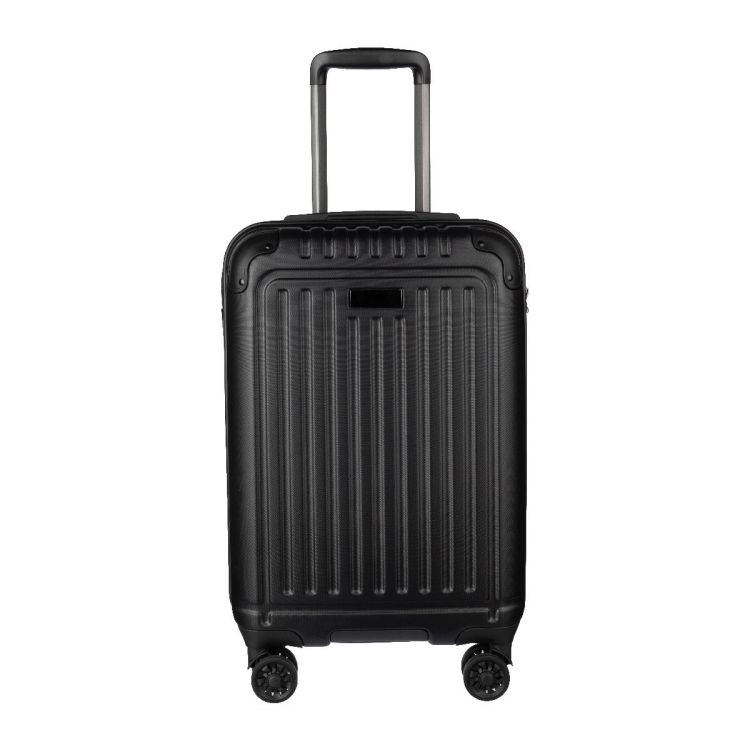 Maleta de ABS con 8 ruedas y asa de tres niveles. Incluye cerradura de seguridad y placa independiente para el grabado del logotipo.