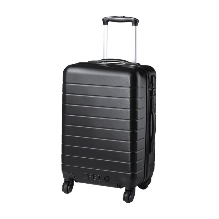 Trolley de cabina de línea nature resistente a los golpes, fabricado en material RPET elaborado a partir de plástico reciclado, para así fomentar la reutilización de residuos plásticos y contribuir a la sostenibilidad del planeta. Asa de transporte telescópica, con 4 ruedas giratorias y cierre de seguridad TSA. Forro interior en RPET, con cintas elásticas de sujeción incluidas. Distintivo RPET grabado en frontal.