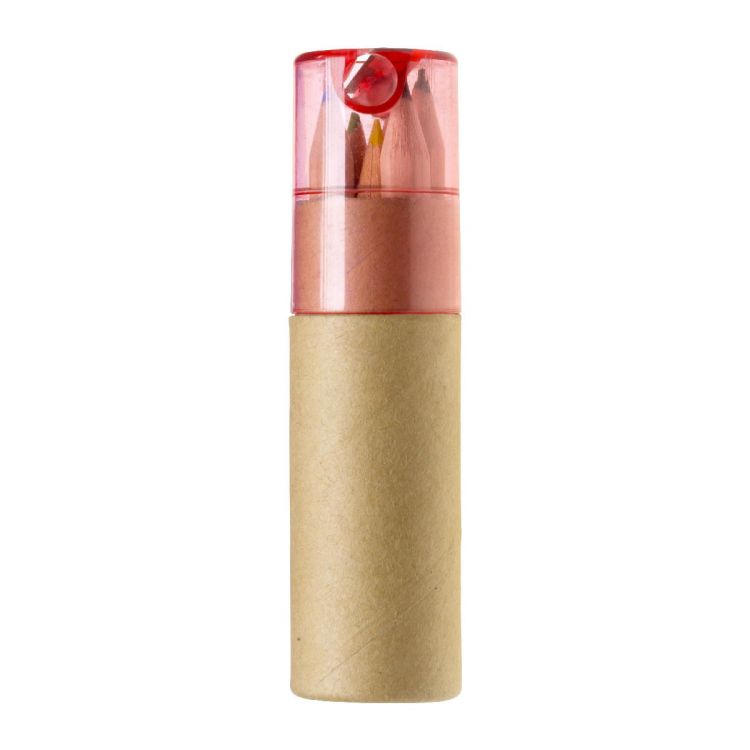 Tubo de cartón con 6 lápices de color y sacapuntas en la tapa de ABS.