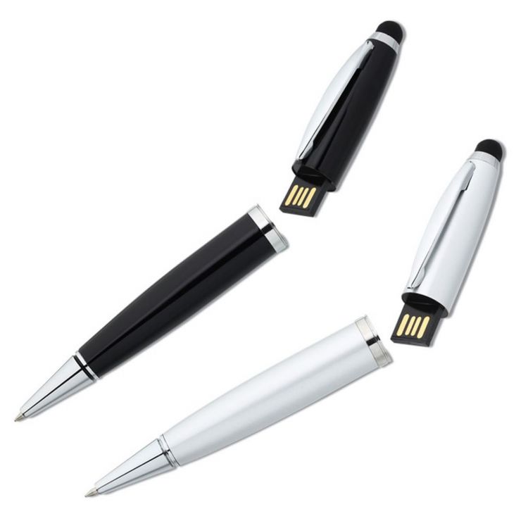 Memoria USB de metal con capacidad de almacenamiento de 1, 2, 4, 8, 16, 32 GB. Es un bolígrafo práctico y una memoria USB, y tiene también puntero para usar en dispositivos con pantalla táctil.