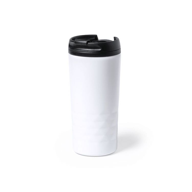 Vaso fabricado en acero inox de 310ml de capacidad. Con tapa dosificador abrefácil y base acolchada de suave espuma. Es ideal para tener en tu escritorio, mesa o en cualquier superficie donde disfrutar tranquilamente de tu bebida favorita. De original acabado brillante y diseño en rombos.