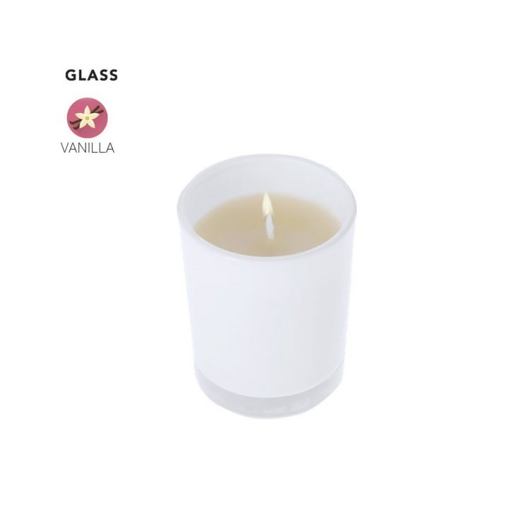 Vela aromática de cristal. Disponibles varias fragancias:- Color blanco: fragancia de vainilla.- Color negro: aroma de sándalo.